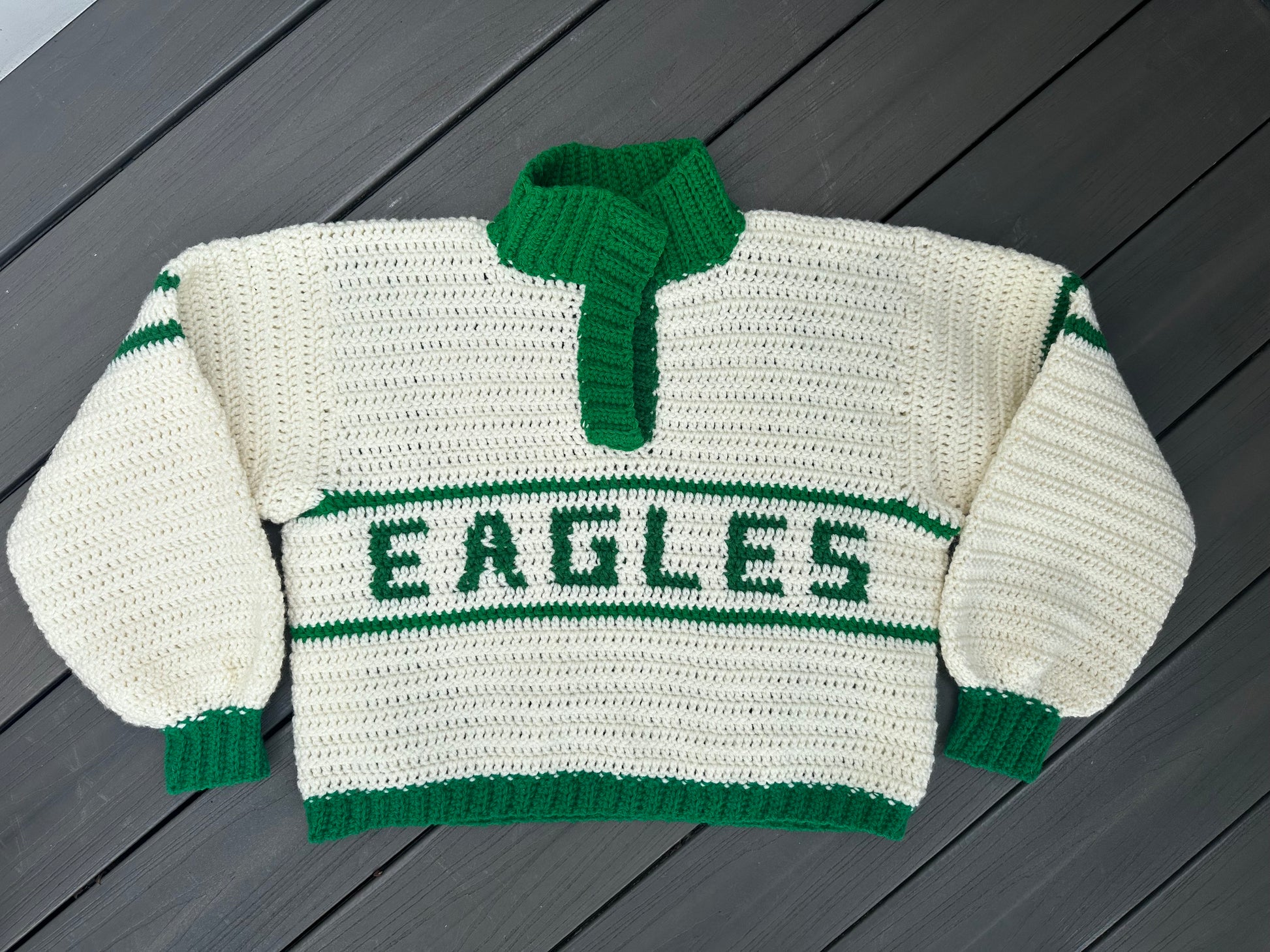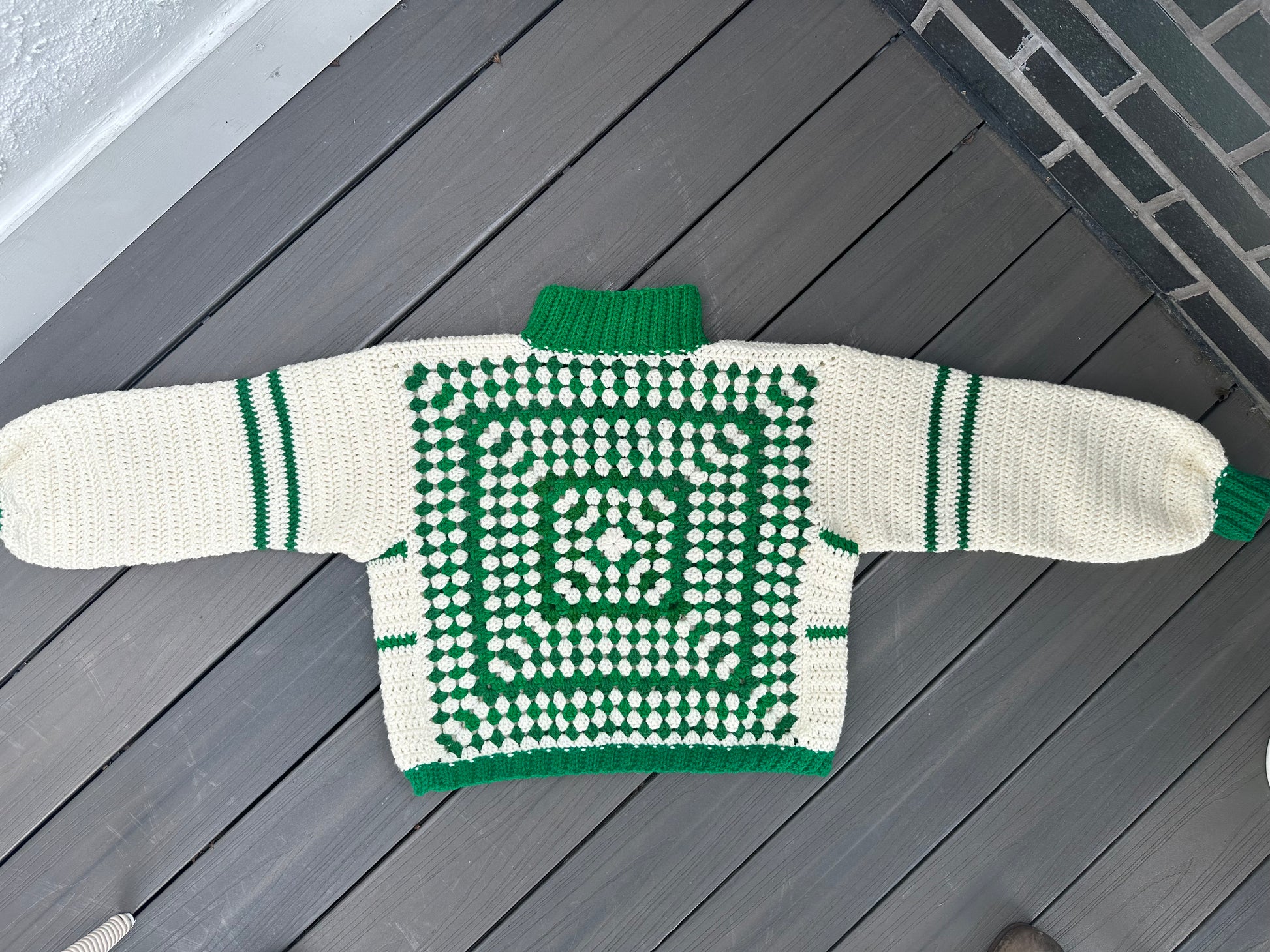 Featuring a classic granny square back paired with a clean, modern front panel and ribbed finishes, this sweater is made to fit you perfectly — no matter your measurements.